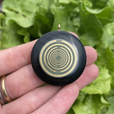 Size 3.5cm contains. copper, copper Tesla &Lakhovsky MWO antennae, shungite, magnetite, brass , quartz, tourmaline, selenite and amethyst crystals.