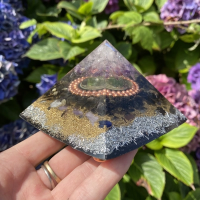 Orgonite helps to filter and balance energy fields in our environment and can aid in strengthening your energy body by converting low frequency energy into a higher frequency that is more beneficial for life forms including yourself, pets and plants. Orgonite helps protect from EMF radiation frequency and negative energies.