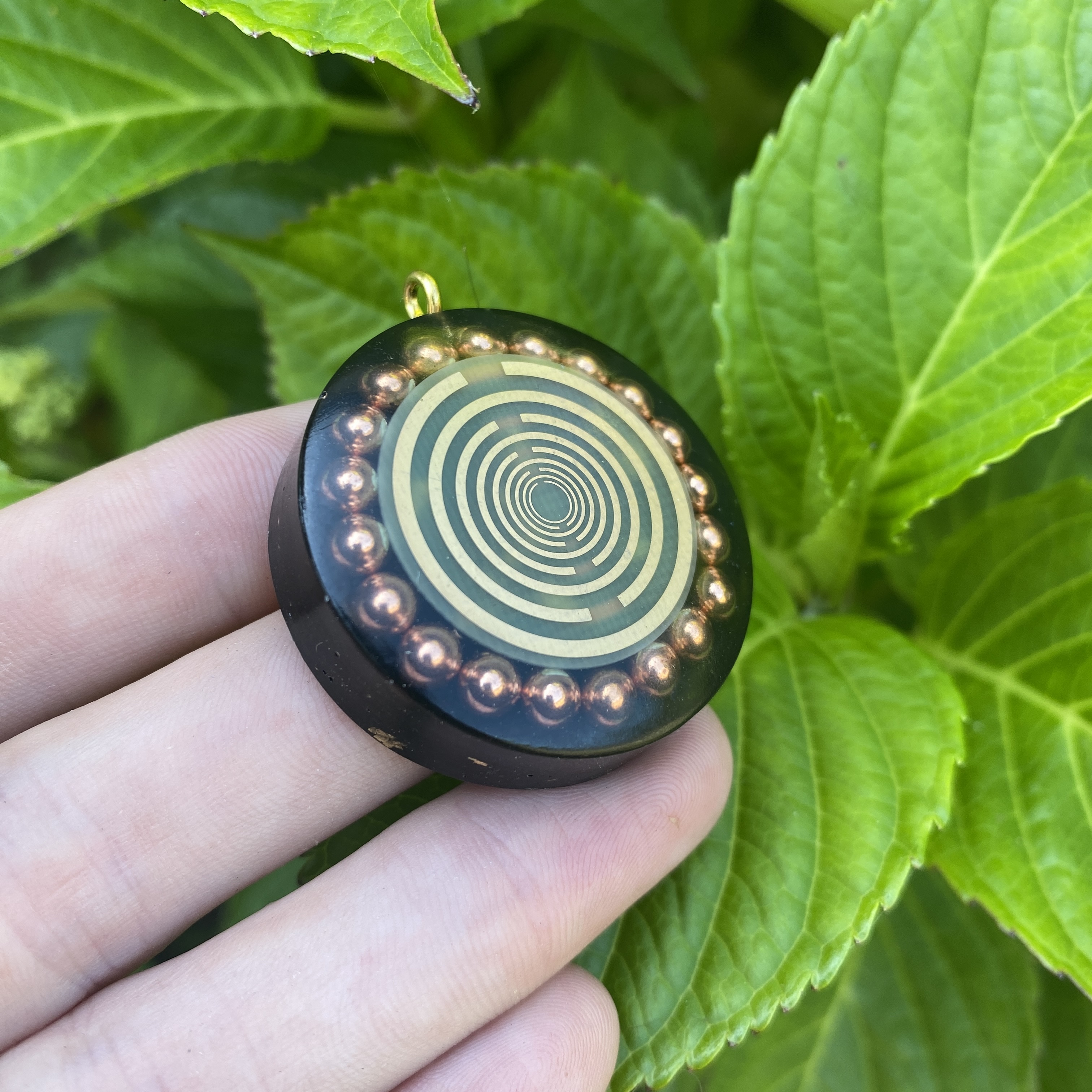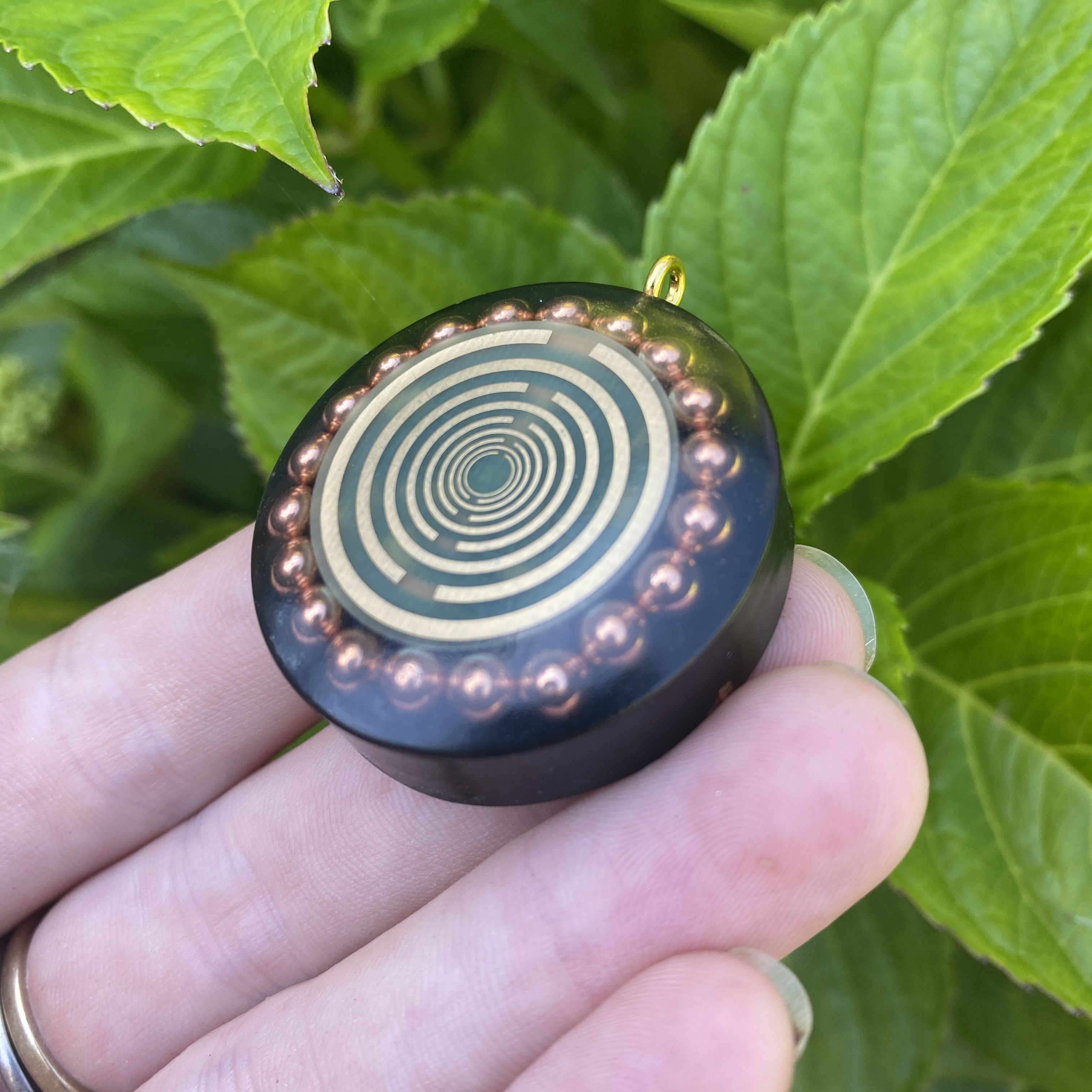 Approx size 3.5cm contains, Selenite, Tourmaline, Quartz, copper balls, shungite magnetite and Multi-wave oscillatior. (MWO)