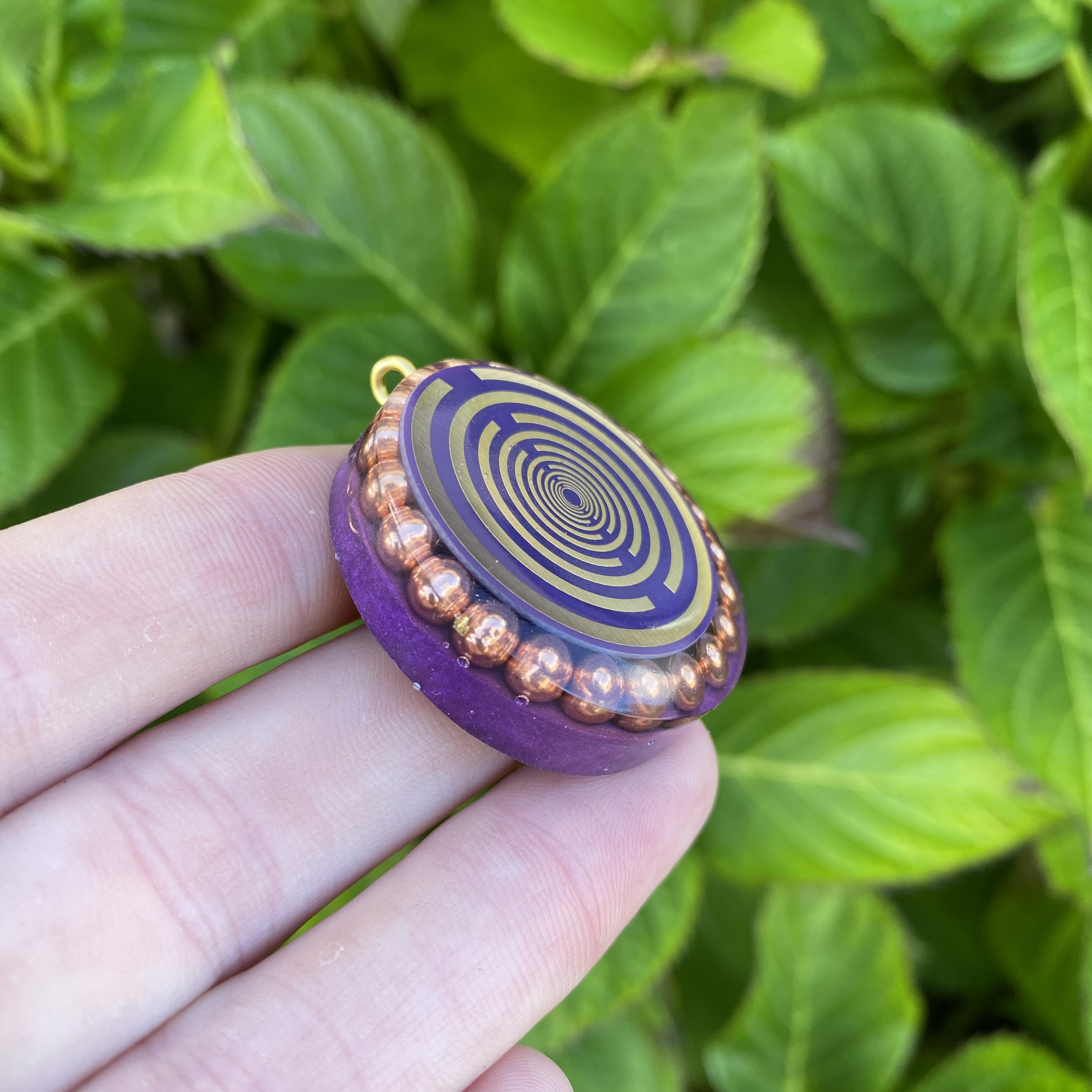 Size 3.5cm contains. copper, copper Tesla &Lakhovsky MWO antennae, quartz, tourmaline, selenite and amethyst crystals.