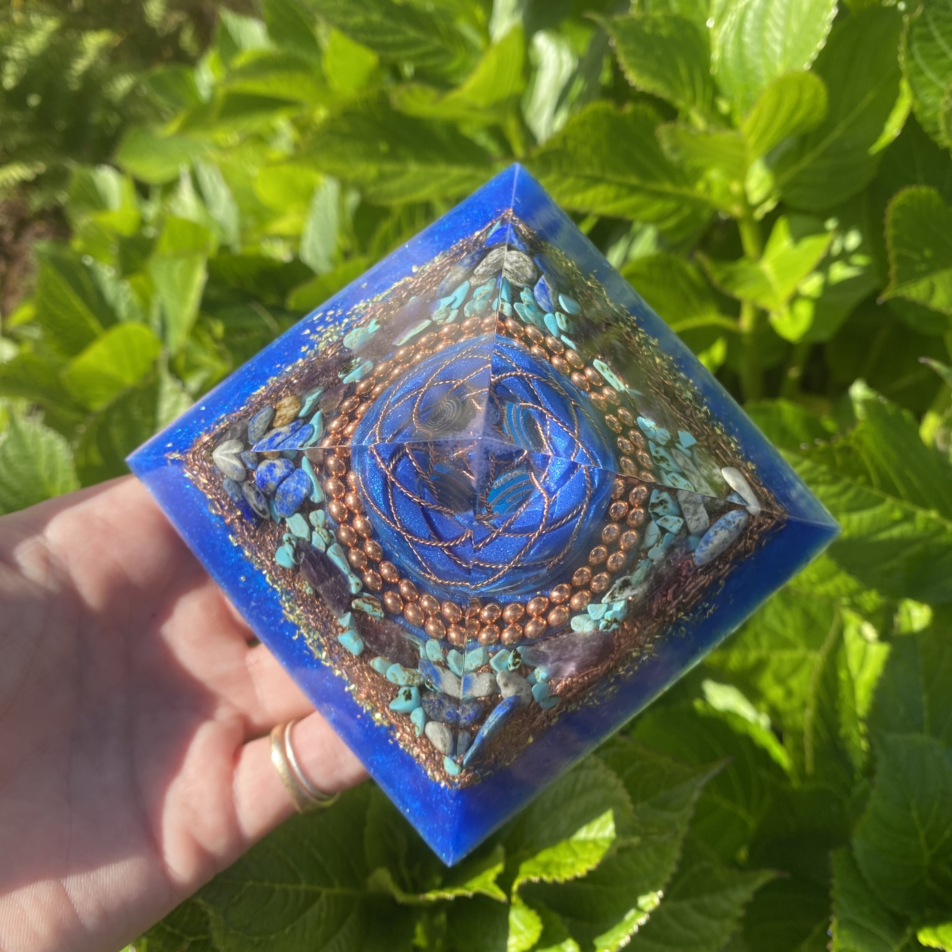 Orgonite helps to filter and balance energy fields in our environment and can aid in strengthening your energy body by converting low frequency energy into a higher frequency that is more beneficial for life forms including yourself, pets and plants. Orgonite helps to protect from EMF radiation frequency and negative energies.