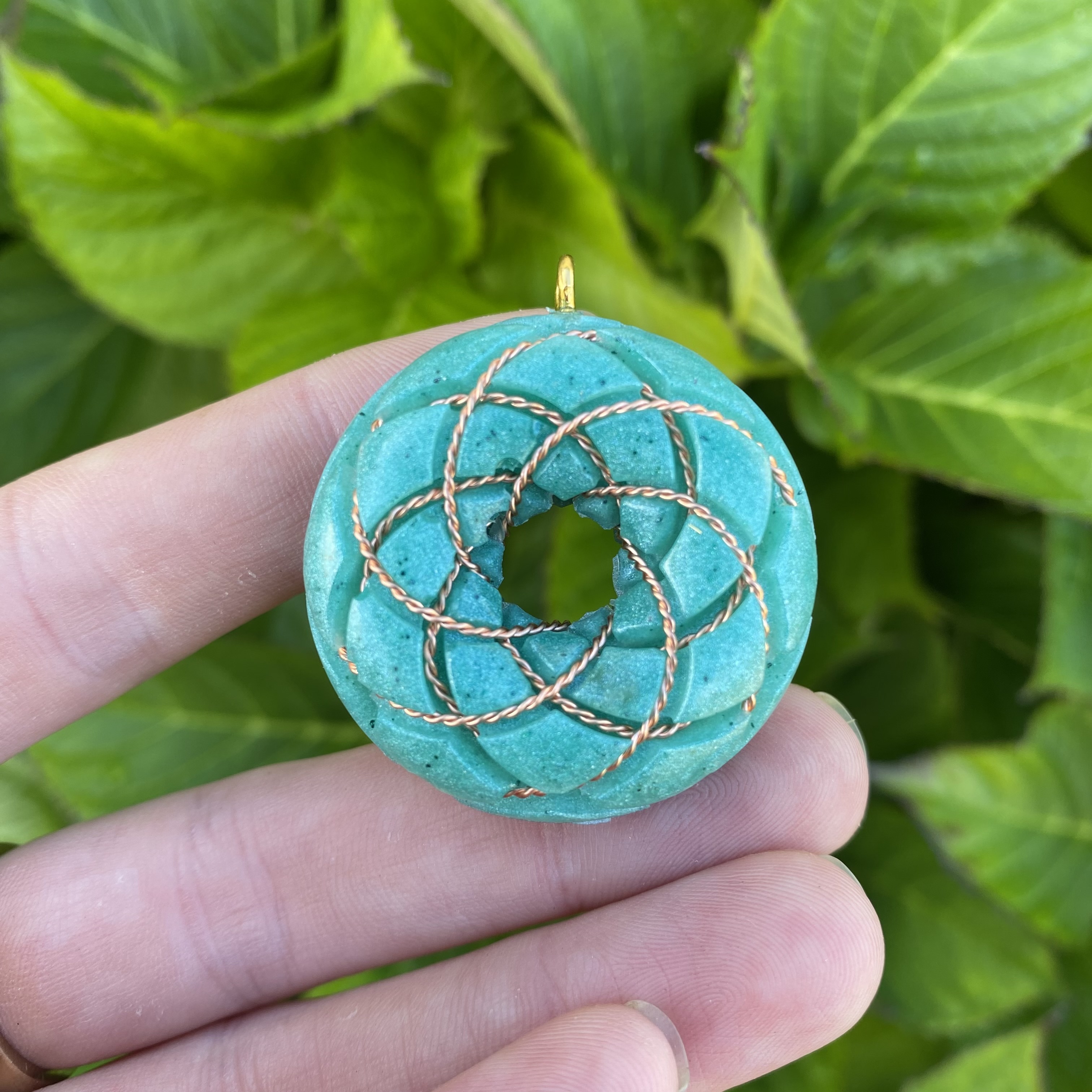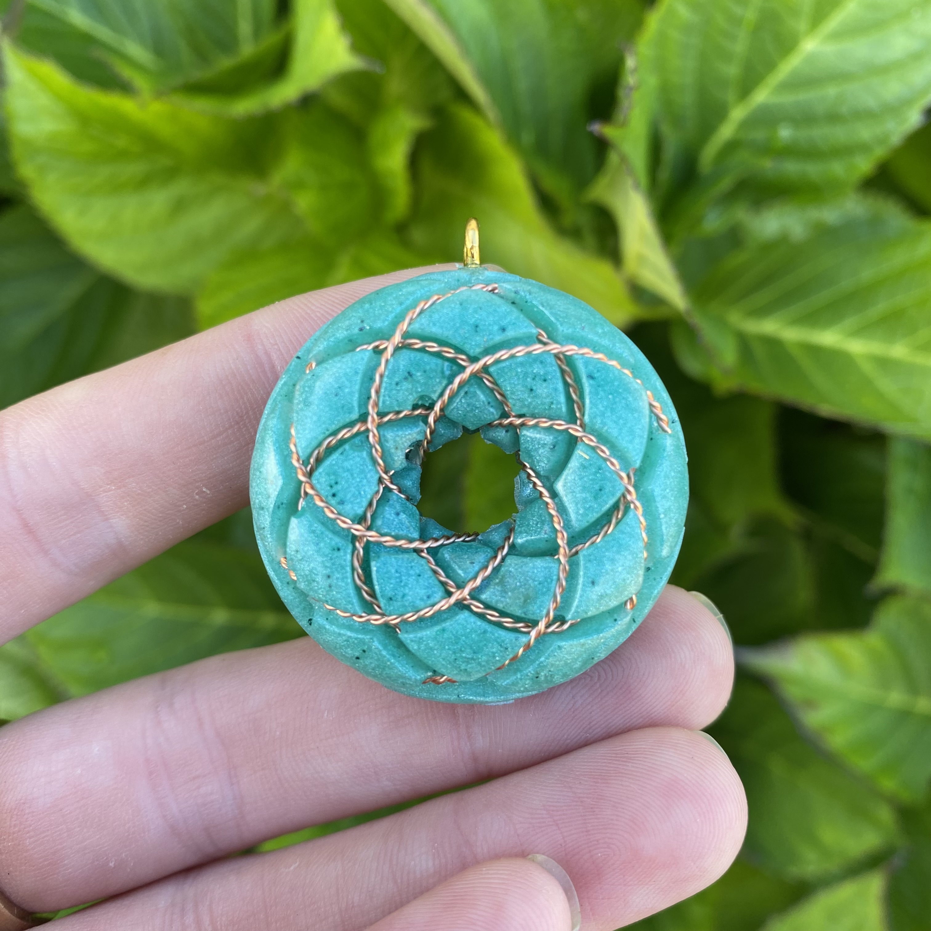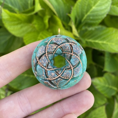 The torus shape is a powerful symbol in sacred geometry, represents unity, infinity, and interconnectedness, illustrating an infinite flow of energy that promotes balance and harmony. In orgonite casting, the torus cleanses and balances energy, amplifies intentions, and generates a powerful energy field, transforming negative energy into positive energy.
