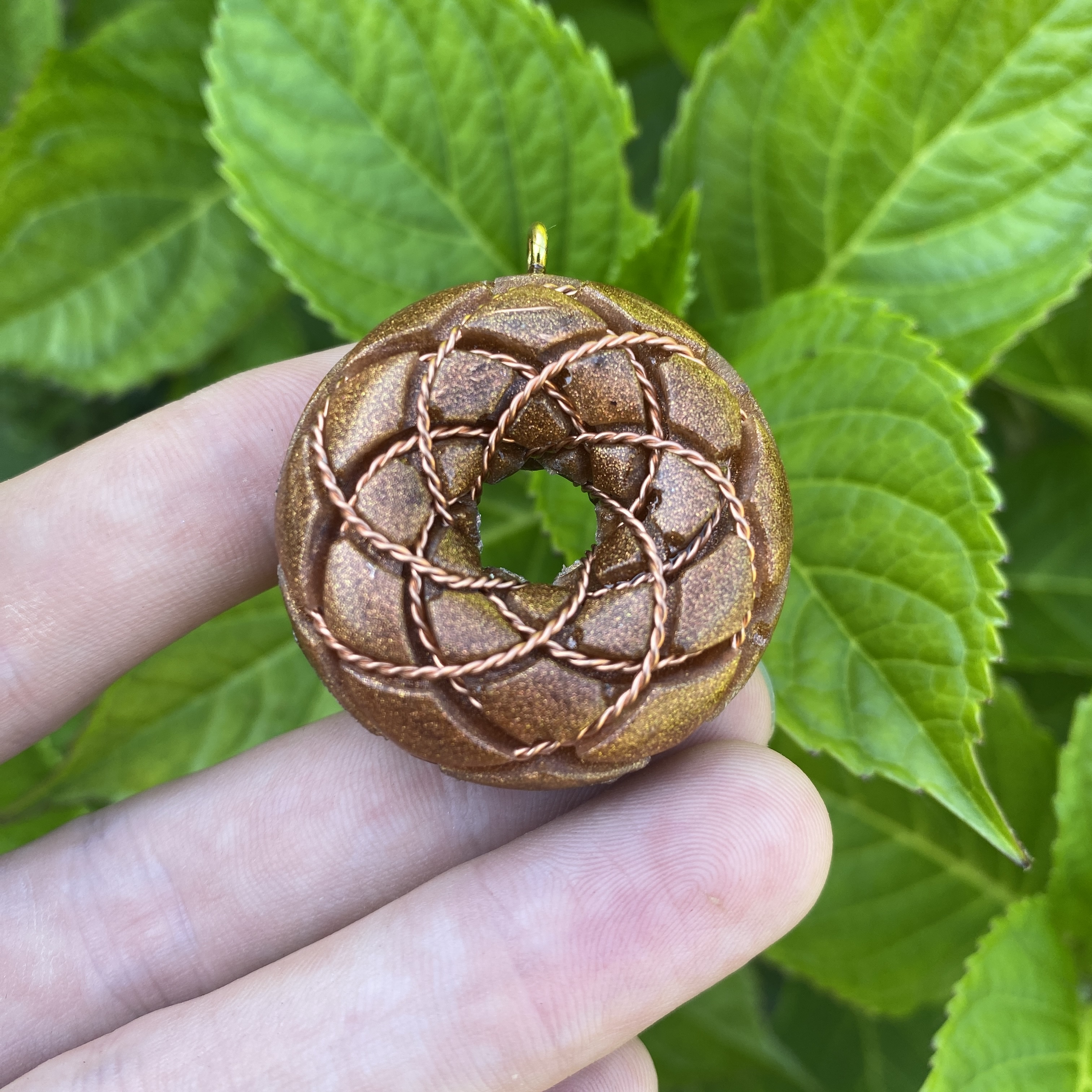 The torus shape is a powerful symbol in sacred geometry, represents unity, infinity, and interconnectedness, illustrating an infinite flow of energy that promotes balance and harmony. In orgonite casting, the torus cleanses and balances energy, amplifies intentions, and generates a powerful energy field, transforming negative energy into positive energy.