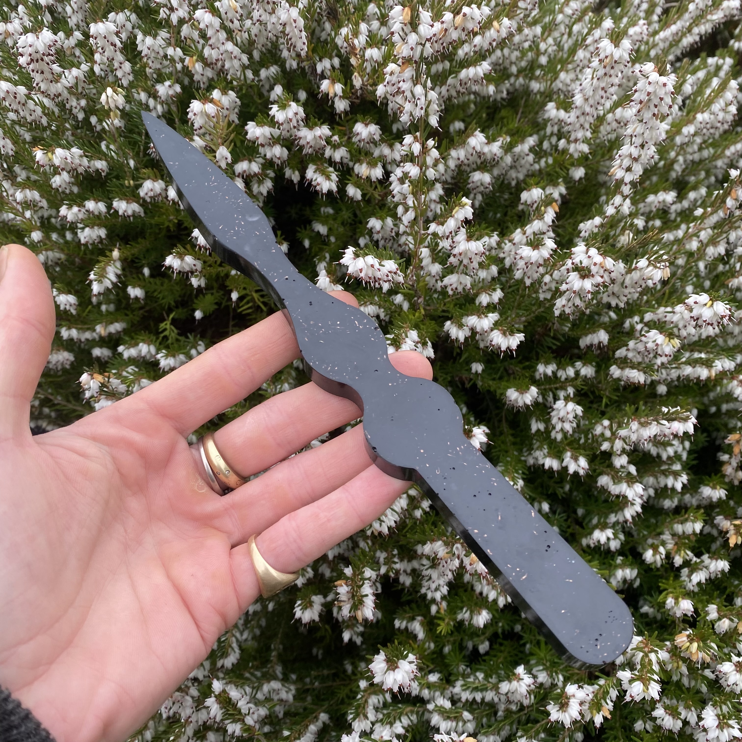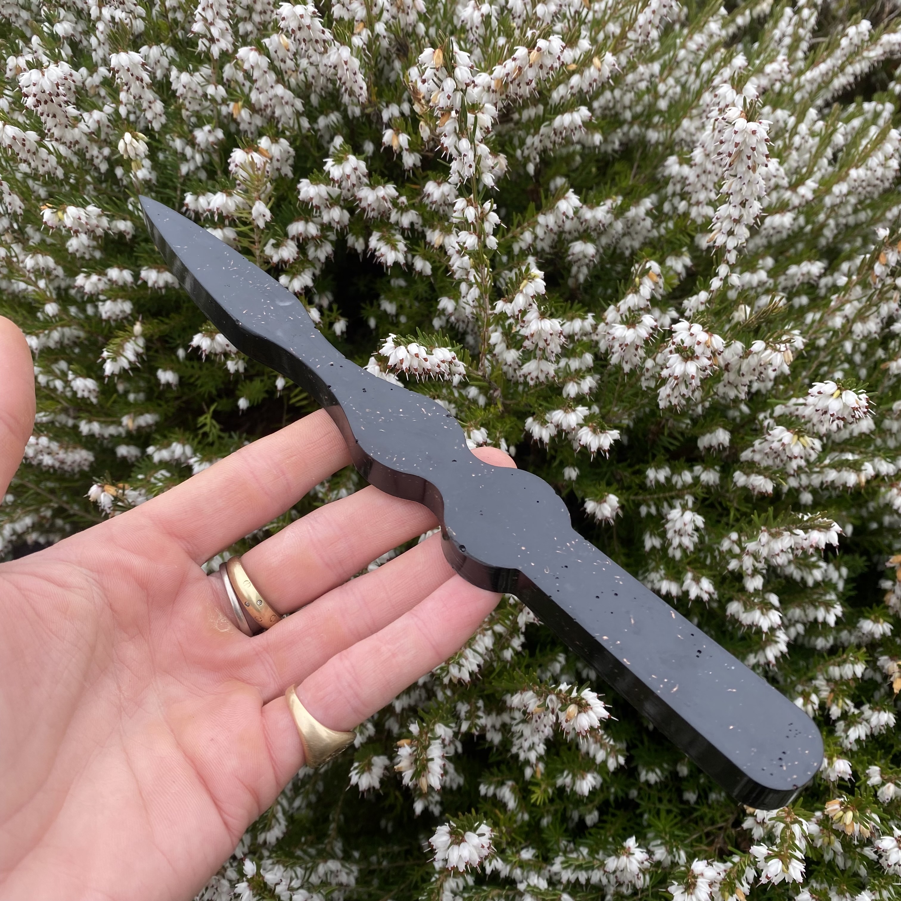 We designed this knife especially for Therapists that need to cut any psychic cords or threads that a difficult to cut. This knife is super powerful and makes the whole process very easy for therapists. It is filled with reiki and healing energy. Contains, Shungite, magnetite, tourmaline, amethyst, copper,