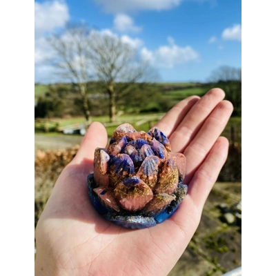Beautiful full orgonite lotus flower with Lapis lazuli, Quartz, copper, aluminium , brass and iron.