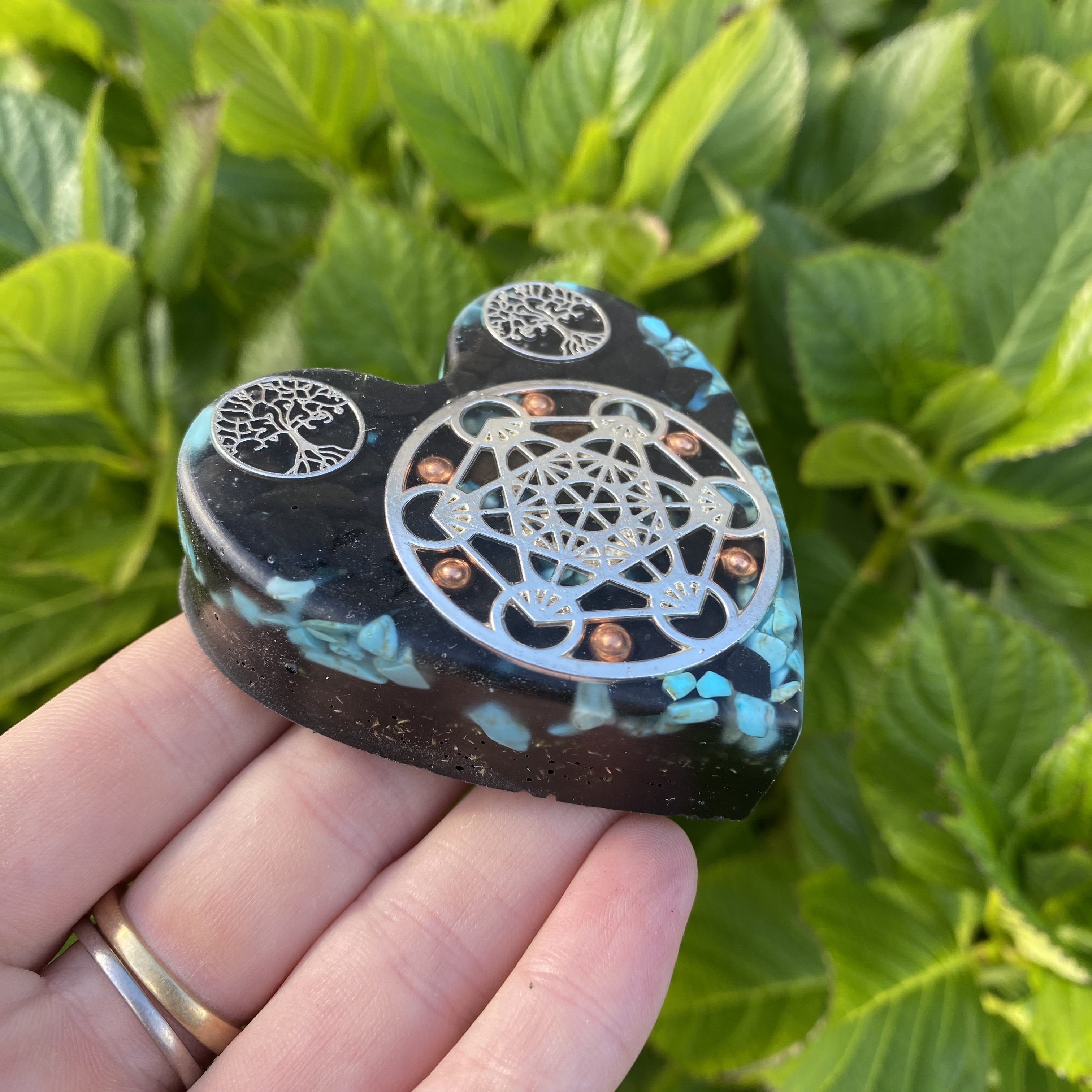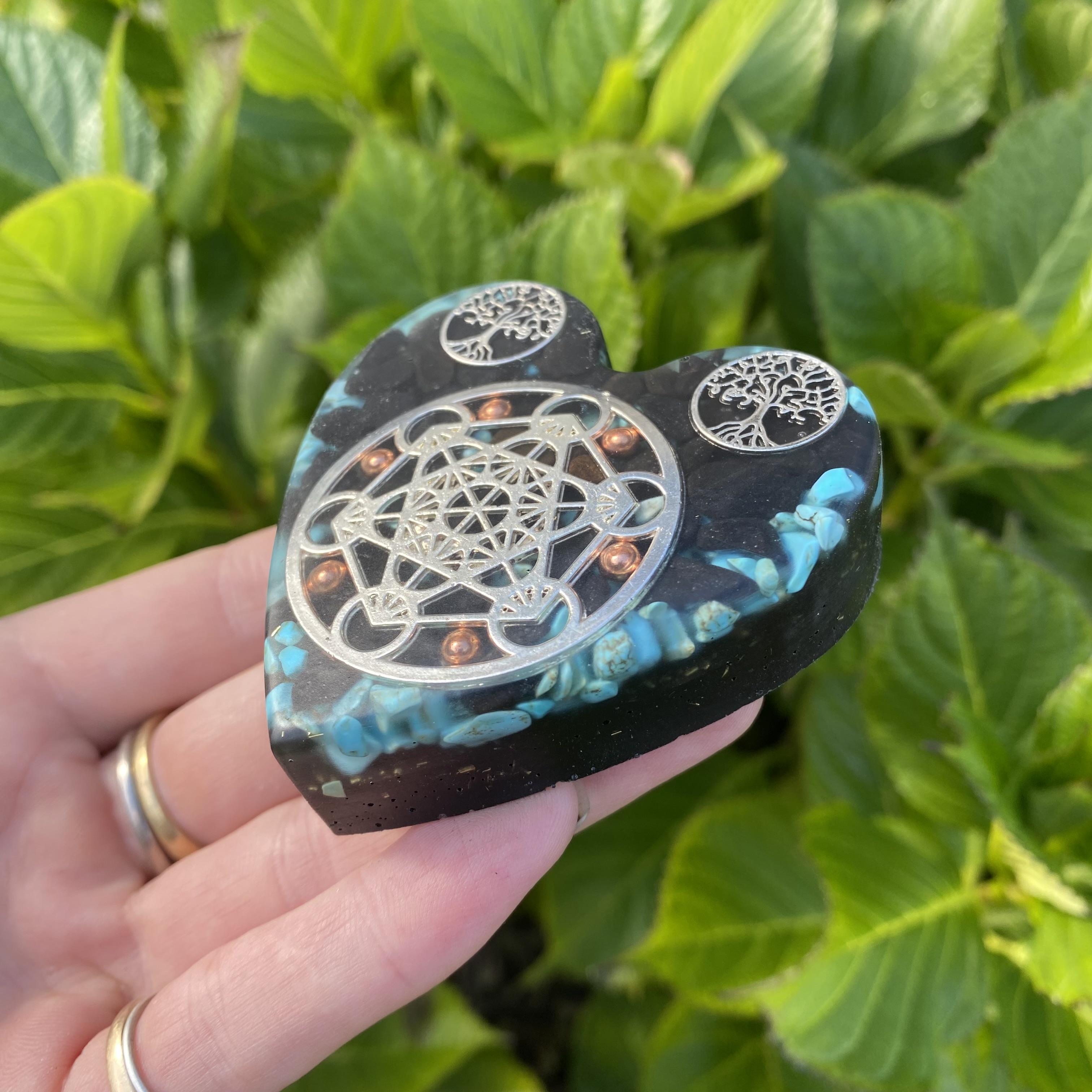 Orgonite helps to filter and balance energy fields in our environment and can aid in strengthening your energy body by converting low frequency energy into a higher frequency that is more beneficial for life forms including yourself, pets and plants. Orgonite helps protect from EMF radiation frequency and negative energies.