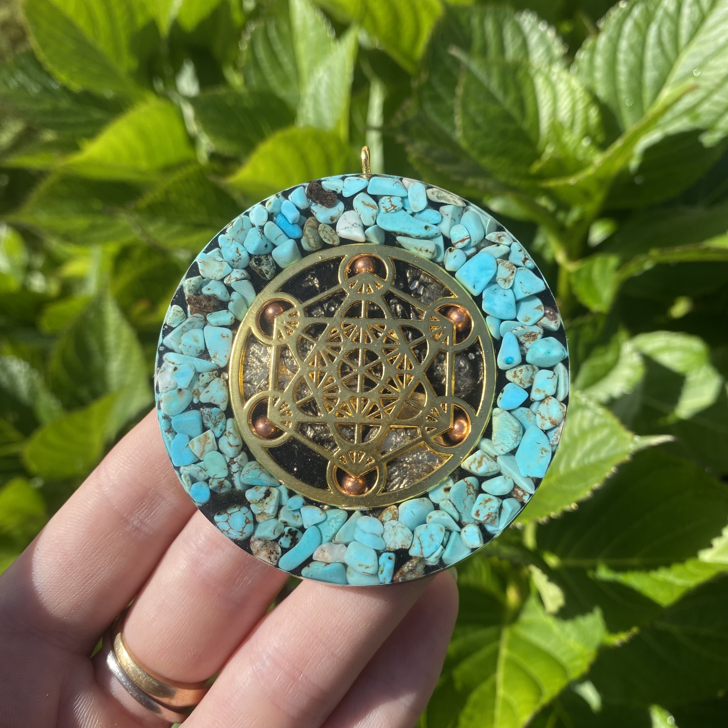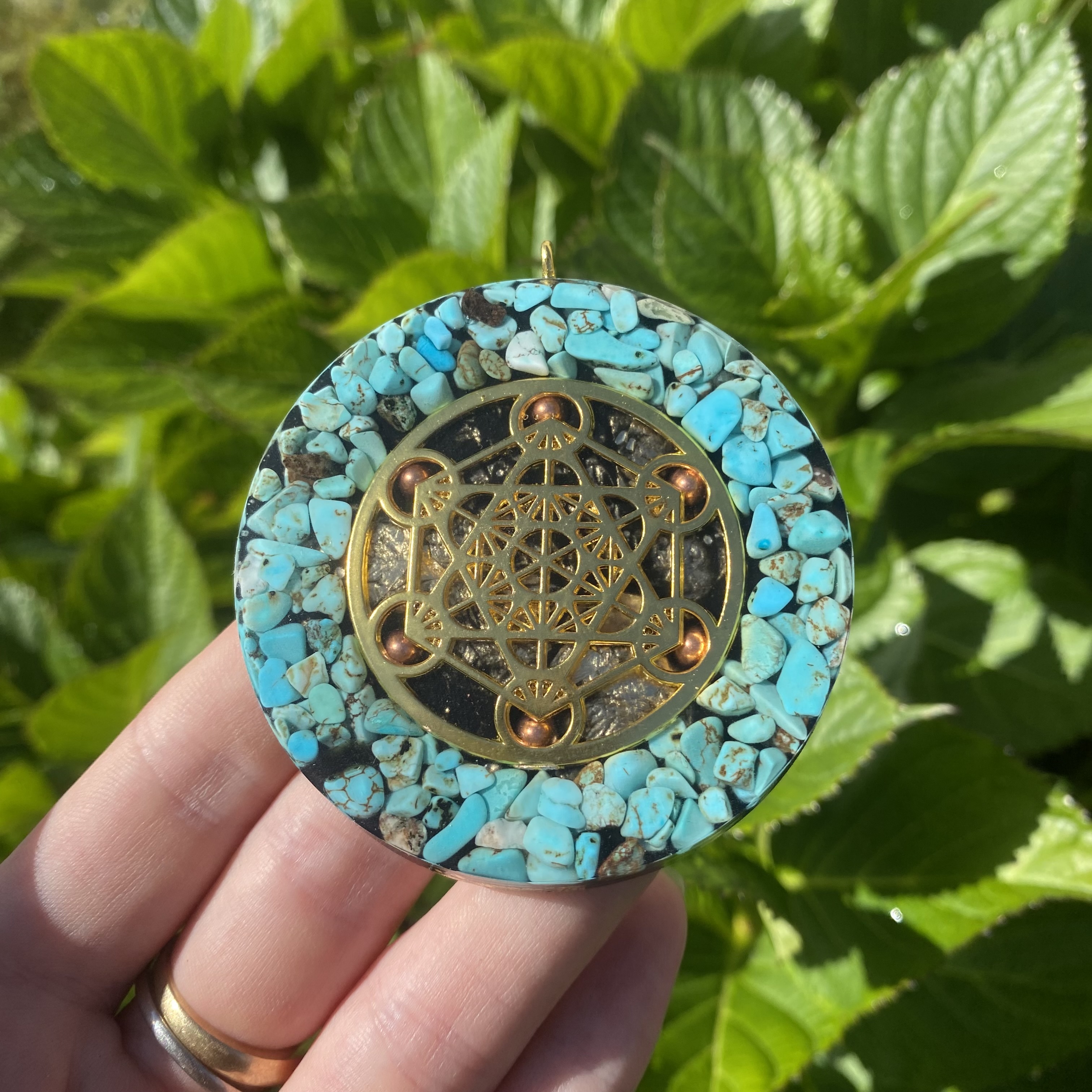 Orgonite helps to filter and balance energy fields in our environment and can aid in strengthening your energy body by converting low frequency energy into a higher frequency that is more beneficial for life forms including yourself, pets and plants. Orgonite protects from EMF radiation frequency and negative energies.